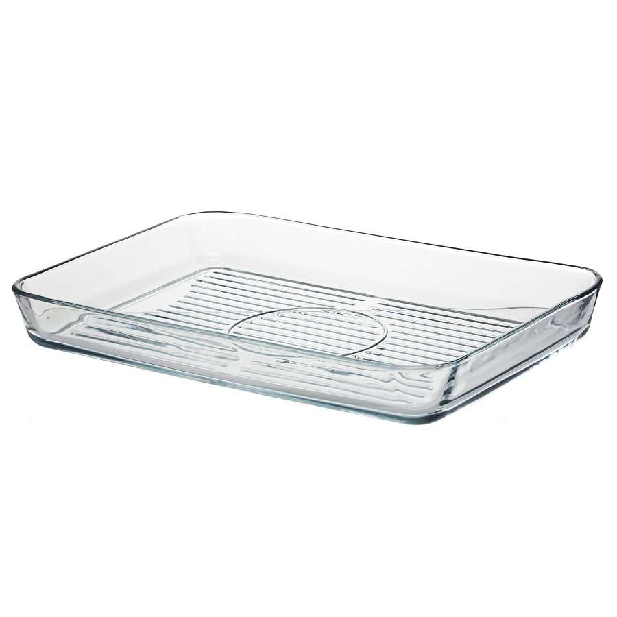 Форма изготовлена из жаропрочного стекла, которое выдерживает высокие температуры, подходит для духовки, микроволновки, холодильника и посудомоечной машины. Специальное рифлёное дно (Grill) обеспечивает равномерное пропекание и красивую текстуру готовых блюд.