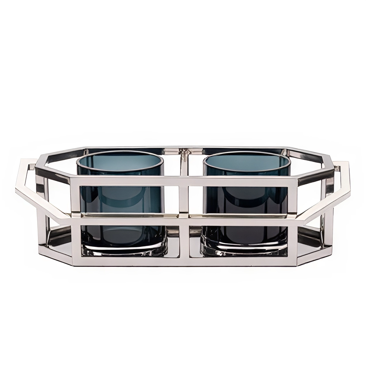 Набор из двух подсвечников «Armored Candle Holders» воплощает спокойствие глубокой синей воды, скрытой в металлической броне, вызывающей в памяти магию старинных замков. Этот набор, состоящий из двух подсвечников, создаст в конце дня атмосферу игры света и тени в центре вашей гостиной. Мерцающее пламя каждой свечи излучает спокойствие и таинственность. Геометрический и современный дизайн набора подсвечников «Armored Candle Holders» идеально гармонирует с другими элементами декора вашего дома.