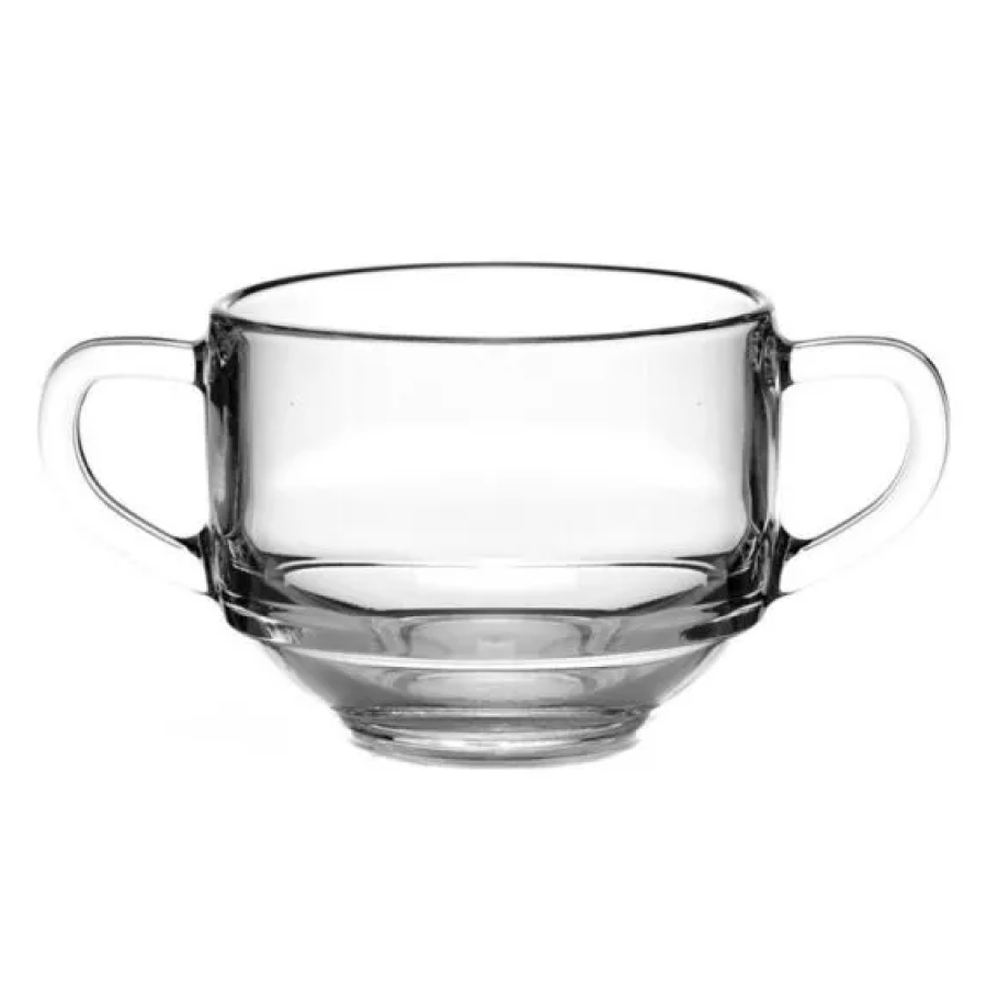 Стеклянная кружка для супа Chef с ручками, объём 480 мл (арт. 53772). Вместительная и удобная, идеально подходит для подачи супов, бульонов и горячих блюд.