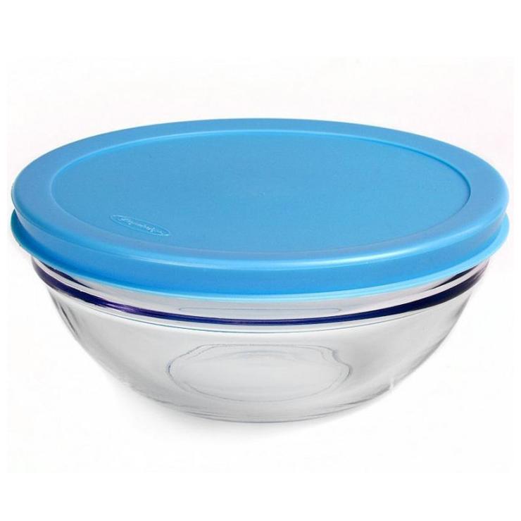 Стеклянная салатница Chef-S №5 с голубой крышкой, диаметр 101 мм (арт. 53583 Blue). Удобная и стильная, идеально подходит для хранения и подачи салатов, закусок и десертов.