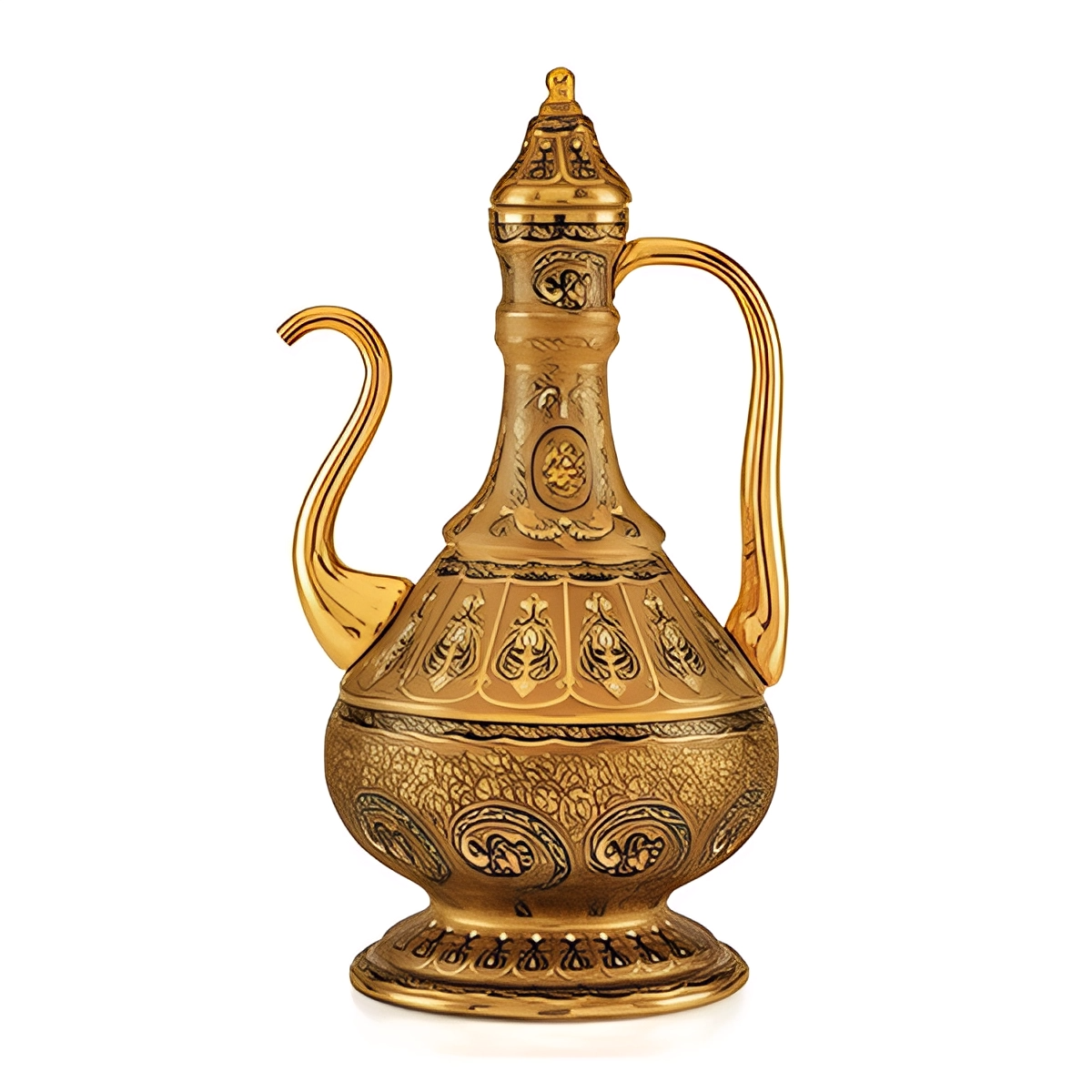 Кувшины — это сосуды с тонким горлом, широким животом, крышкой и ручкой, используемые для хранения жидкостей, таких как вода и шербет. В османской культуре кувшины использовались для омовения рук и лица, а в различных формах они также использовались для подачи жидких напитков, таких как шербет, в основном на дворцовой кухне и в особняках. Мотивы на Гюльчехре Ибрик были созданы путем интерпретации узоров на кофейнике 19-го века во дворце-музее Топкапы. Кофейник был подарен Абдулхамидом II гробнице пророка Мухаммеда. Позже Фахреттин-паша вывез его с Аравийского полуострова в Стамбул, чтобы включить в османскую сокровищницу. Гюльчехре Ибрик изготовлен из стекла ручной работы, и все рельефные узоры на нем украшены вручную с использованием 24-каратного золота и стеклянной краски.