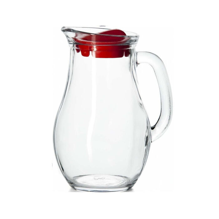 Стеклянный графин Frigo с красной крышкой, объём 1340 мл (арт. 80052 Red). Вместительный и прочный, идеально подходит для подачи воды, соков и лимонадов.