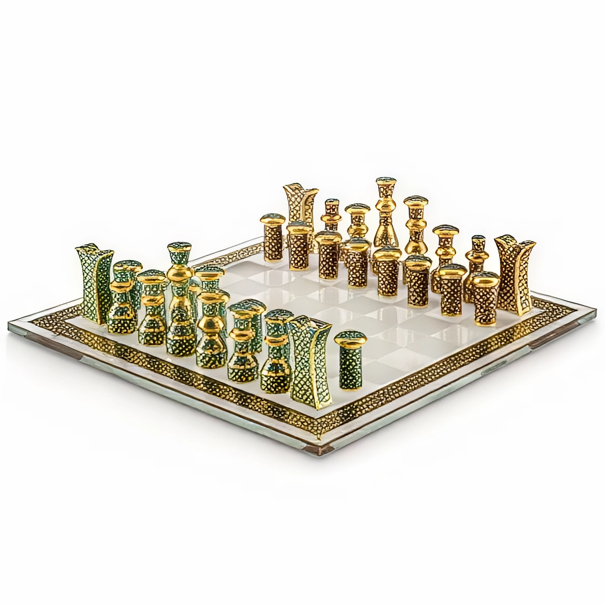 Шахматы были игрой, которой наслаждались в Османском дворце, как и в восточной, и в западной культурах. Поскольку трехмерные фигуры были невозможны в Османской империи из-за религиозных верований, шахматные фигуры, как правило, были простыми. Шахматный набор Murassa* был создан путем адаптации сохранившихся фигур оригинального набора шахмат 16-го века. Оригинальный набор украшен различными мотивами, созданными с использованием ажурной и бирюзовой техники. Верхние части украшены рубинами-кабошонами в золотой оправе или камнями бирюзы. Девять фигур имеют рубиновые верхние части, а шесть — бирюзовые. Фигуры в шахматном наборе Murassa индивидуально вылеплены вручную из стекла ручной работы. Они украшены позолотой и стеклянной росписью. Для изготовления фигур используется полудрагоценный натуральный агат. *Murassa означает украшенный драгоценными камнями или витиеватыми самоцветами.