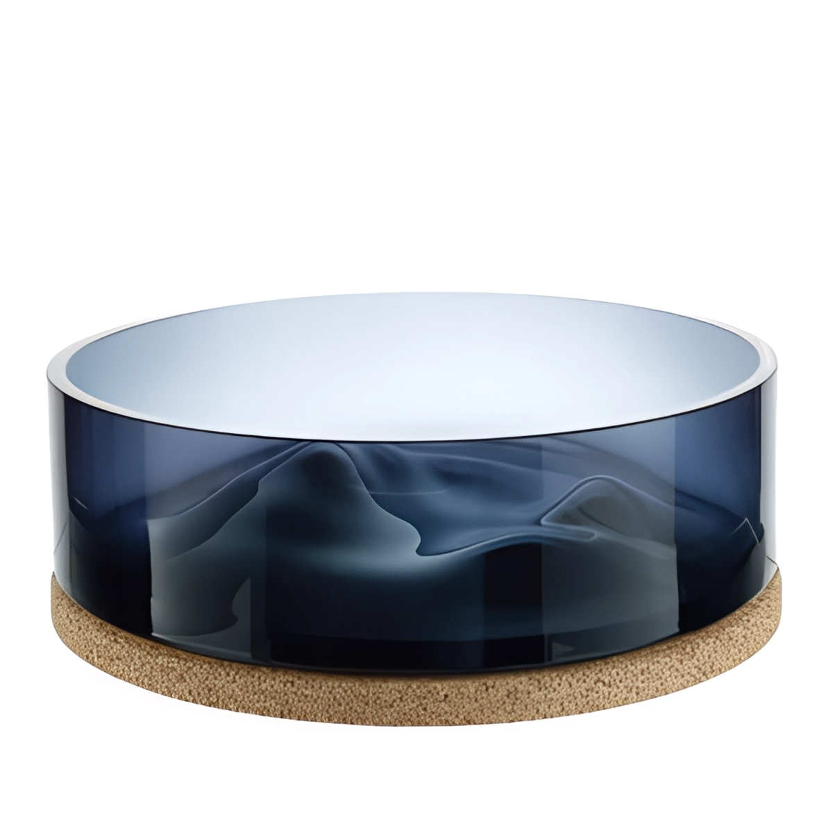 Стеклянная чаша Omnia «Topografi» диаметром 35 см в насыщенном тёмно-синем цвете. Элегантный рельефный дизайн делает её стильным акцентом для сервировки и эффектным элементом современного интерьера.