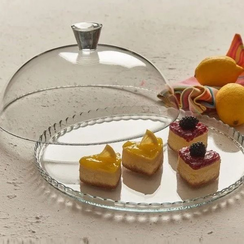 Широкая форма обеспечивает удобное размещение тортов и выпечки, а прозрачная крышка сохраняет свежесть и позволяет любоваться десертом, не открывая его. Такая тортница станет незаменимой как дома, так и в кафе или кондитерской.