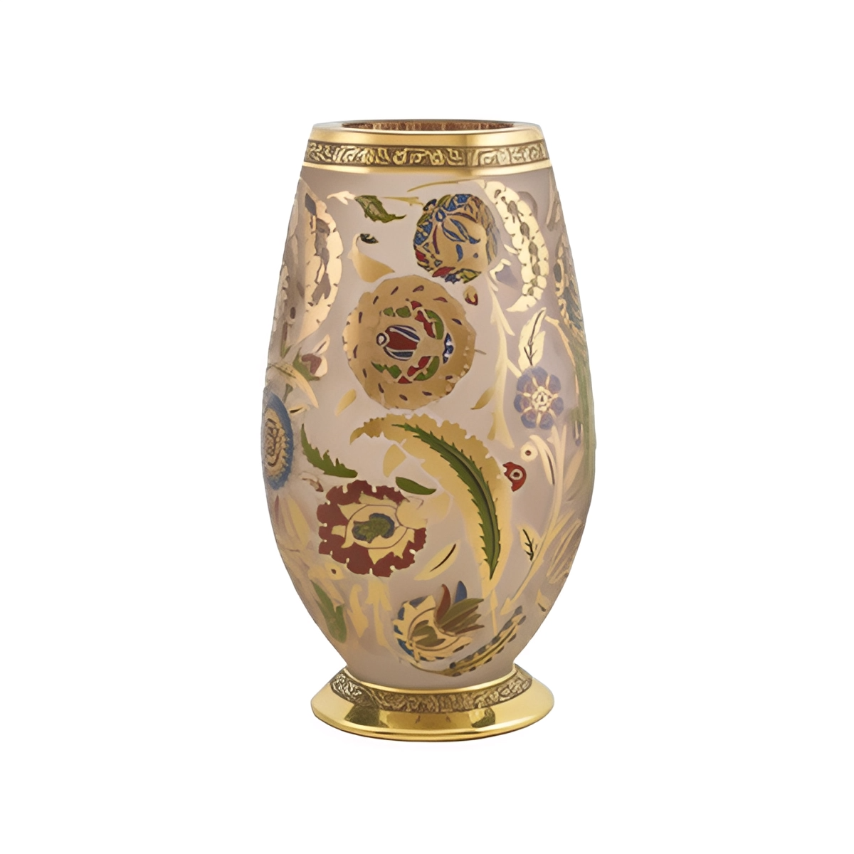Во времена правления Сулеймана Великолепного (1520–1566), султана, правившего дольше всех в Османской империи, османская культура и искусство достигли значительного расцвета, и было создано множество произведений в самых разных областях. Одним из таких произведений были кафтаны. Кафтаны эпохи Сулеймана, как правило, шились из дорогих тканей, таких как шелк, бархат или шерсть. Эти кафтаны часто расшивались золотыми или серебряными нитями и украшались различными мотивами, геометрическими узорами и цветочными элементами. Узоры на вазе «Шахесте» были вдохновлены кафтанами, украшенными листьями тростника и цветами, которые Сулейман Великолепный заказал для своего сына. Ваза «Шахесте» изготовлена вручную из стекла, а рельефные узоры на ней декорированы 24-каратным золотом, позолотой и античными красками.