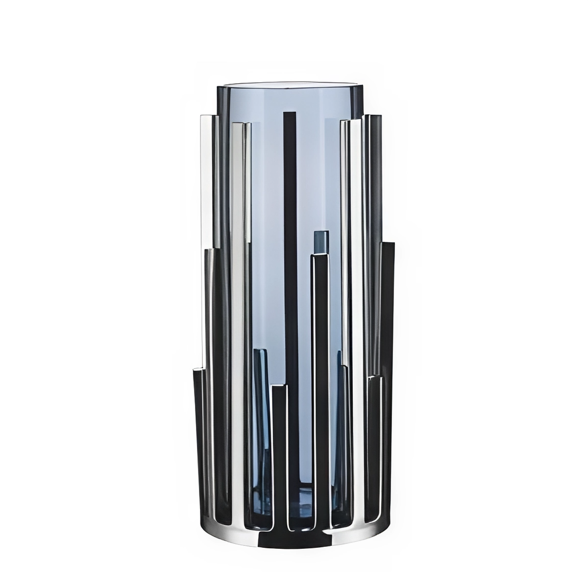 Подсвечник Armored Candle Holder стального синего цвета – это эстетически привлекательный и функциональный предмет, завораживающий своим нестандартным дизайном. Его цилиндрическая конструкция состоит из неравномерно расположенных блестящих металлических прутьев разного размера, которые создают эффектные отражения на внешней поверхности. Эти прутки отражают свет из внутренней части подсвечника под разными углами, создавая впечатляющее визуальное пиршество. Пространство между прутьями создает таинственную глубину, а прозрачность стекла наполняет магией света каждый уголок комнаты. Этот декоративный подсвечник , позволяющий насладиться идеальной гармонией стекла и металла, добавит вашему дому современный штрих благодаря геометрическим линиям и блестящим металлическим деталям.